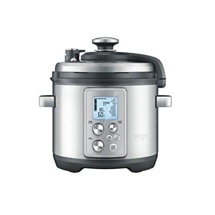 Multicuiseur de 6 L en acier inoxydable, équipé d’un minuteur, d’une fonction maintien au chaud et de composants compatibles lave-vaisselle pour une utilisation pratique.