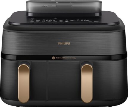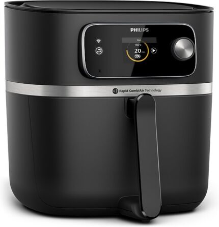 Friteuse sans huile de 7,3 L offrant une capacité maximale de 1,4 kg, idéale pour préparer des portions généreuses tout en restant compacte et pratique au quotidien.